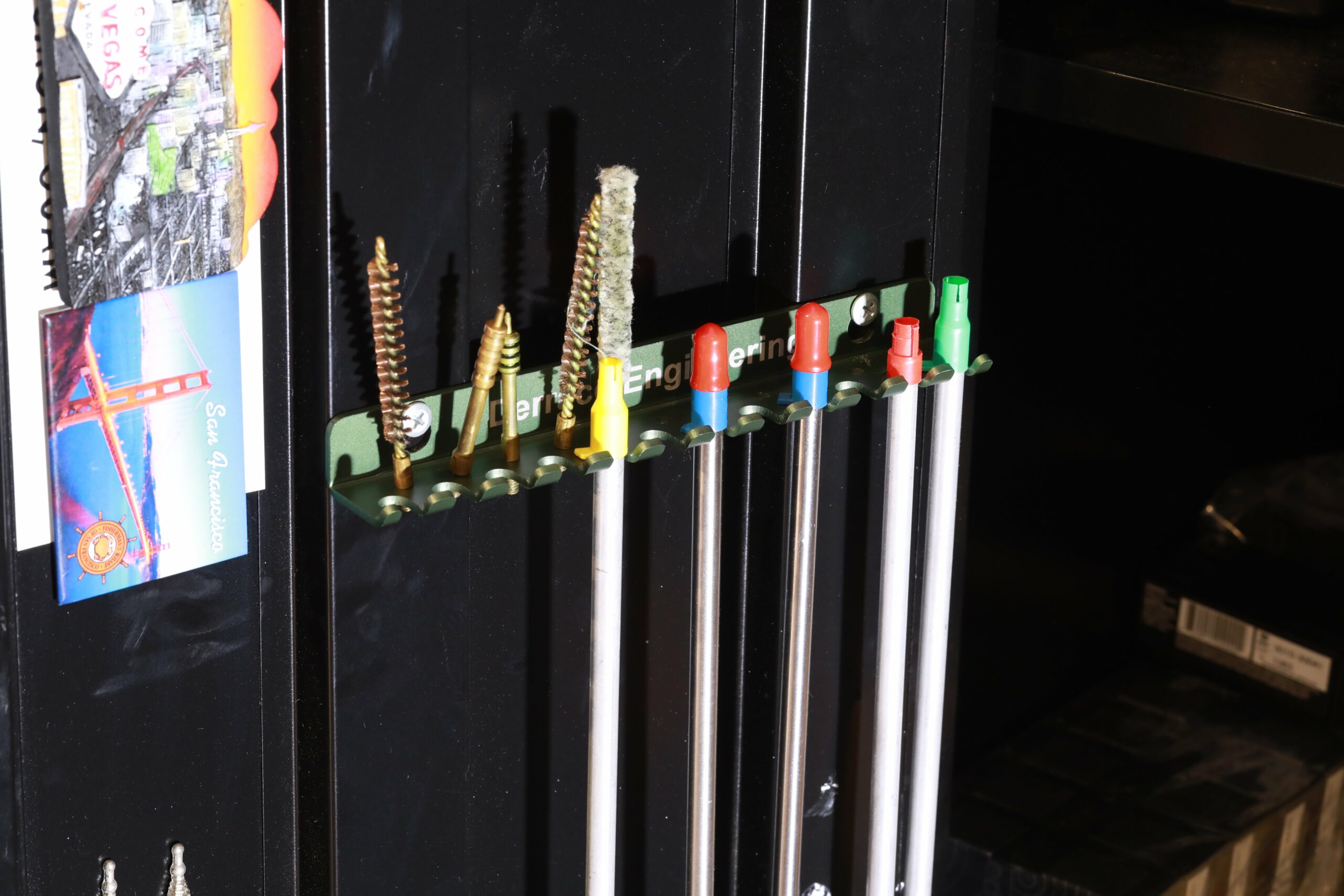 Extra holes for patch and brush tips, small screwdrivers, allen keys, etc.